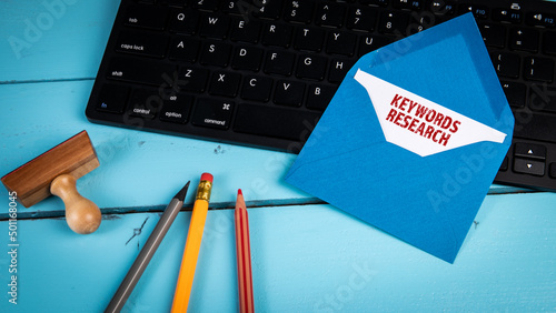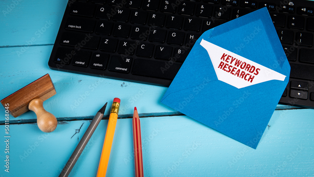 The watermark will not be included on Canvas Print.: Keywords research - letter on black computer keyboard