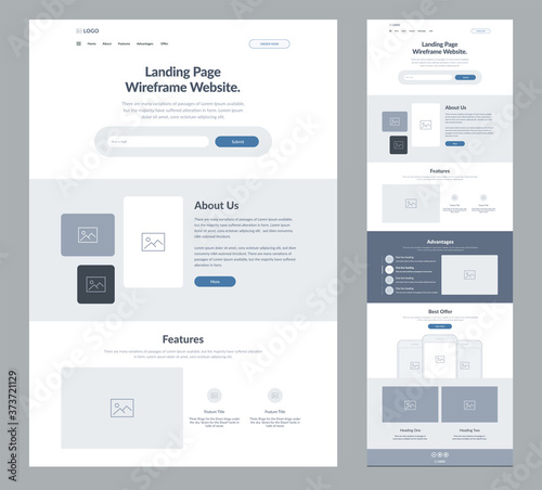 Canvas Print : Landing page wireframe site design for business - one page web site layout template - modern responsiv