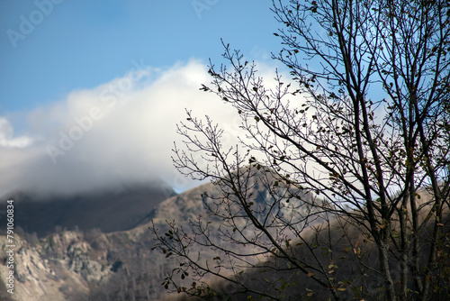 Canvas Prints landscape with beautiful fog in forest on hill or trail through a mysterious winter forest with autu