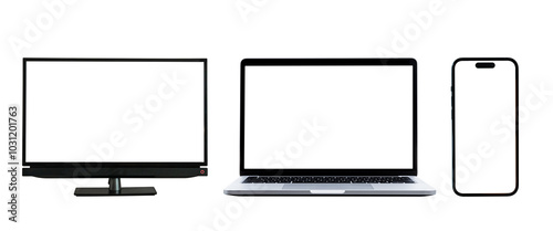 Canvas Prints laptop computer, mobile phone and monitor with blank screen isolated on transparent background, png  - Canvas Prints Canvas Prints laptop computer, mobile phone and monitor with blank screen isolated on transparent background, png - Canvas Prints