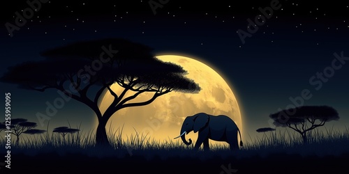 The watermark will not be included on Canvas Print.: Large elephant is walking through a field of tall grass