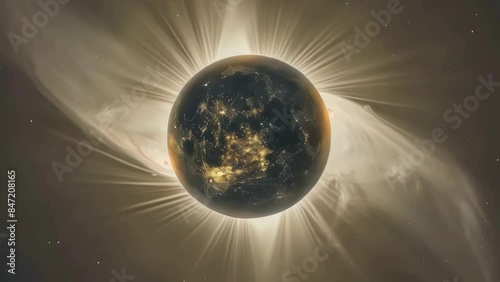 The watermark will not be included on Canvas Print.: Large planet with bright light shining on it