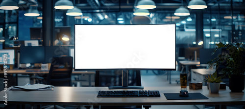 Canvas Print : Led computer screen mockup in a stylish office environment, showcasing a clear png display for enhan