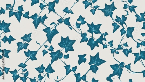 The watermark will not be included on Canvas Print.: Light blue ivy vines geometric pattern seamless plain white background design