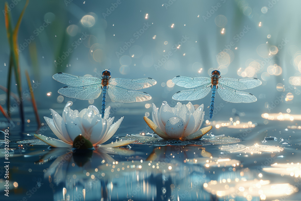 Canvas Prints light pastel dragonflies hovering over a serene pond. concept of nature and calmness. generative ai. - Canvas Prints Canvas Prints light pastel dragonflies hovering over a serene pond. concept of nature and calmness. generative ai. - Canvas Prints