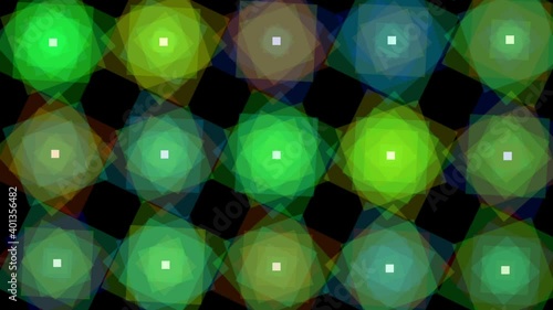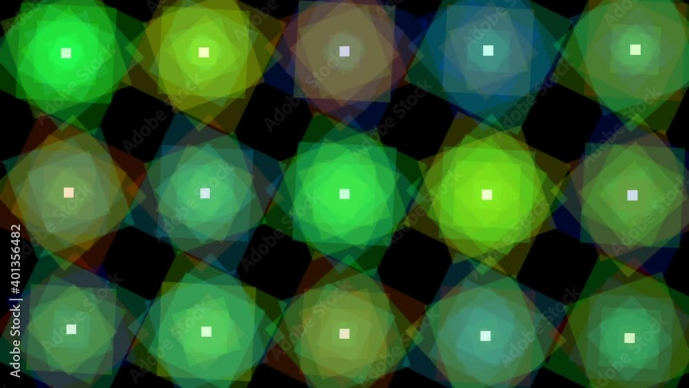 The watermark will not be included on Canvas Print.: Light wall on isolated black background, close-up of rectangular rotating squares of lights rotating
