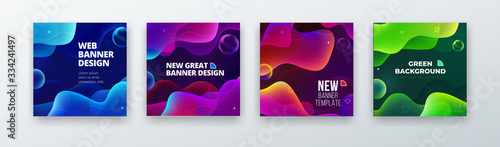 The watermark will not be included on Canvas Print.: Liquid color background design - fluid gradient abstract shapes composition - futuristic design backgr