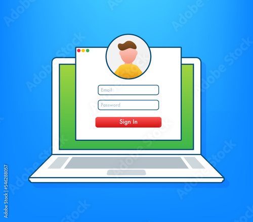 The watermark will not be included on Canvas Print.: Login page on laptop screen - notebook and online login form, sign in page - user profile, access to a