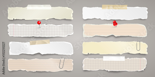 The watermark will not be included on Canvas Print.: Long ripped paper strips with adhesive tape - realistic crumpled paper scraps with torn edges - lined
