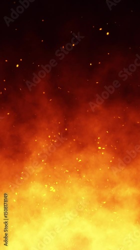 Canvas Prints loop artistic fire flames with flying sparks on vertical background.