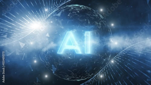 The watermark will not be included on Canvas Print.: Looped digital metaverse cyberspace with ai sphere animation - concept artificial intelligence scienc