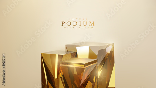 The watermark will not be included on Canvas Print.: Luxury background with 3d realistic crystal podium element and glitter light effect decoration -
