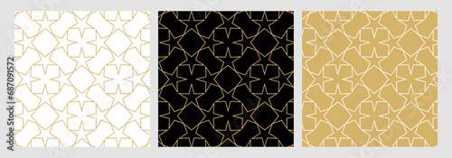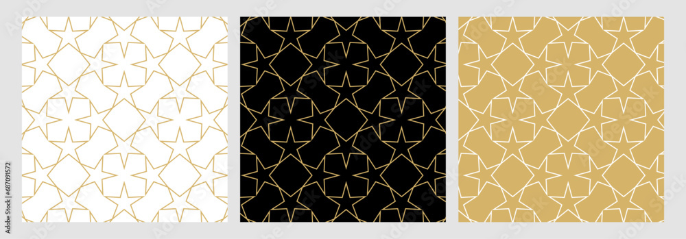 The watermark will not be included on Canvas Print.: Luxury color geometric vector set - abstract pattern seamless gold stars isolated on black background