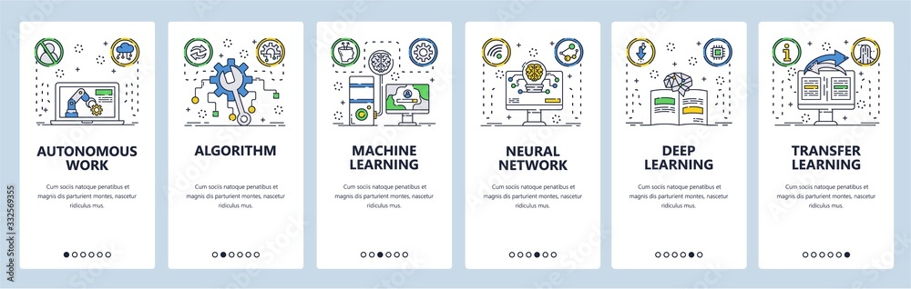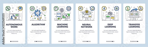 The watermark will not be included on Canvas Print.: Machine learning website and mobile app onboarding screens vector template