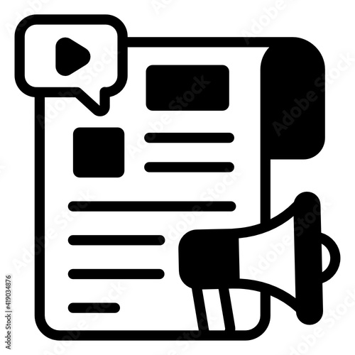 The watermark will not be included on Canvas Print.: Magazine layout in glyph icon, editable vector