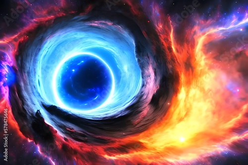 The watermark will not be included on Canvas Print.: Magical fantasy black hole portal in the space with colorful nebula, - generative ai
