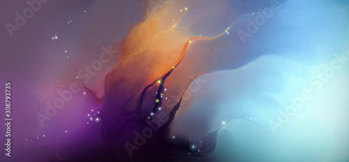 The watermark will not be included on Canvas Print.: Magical light color mixing on a dark background