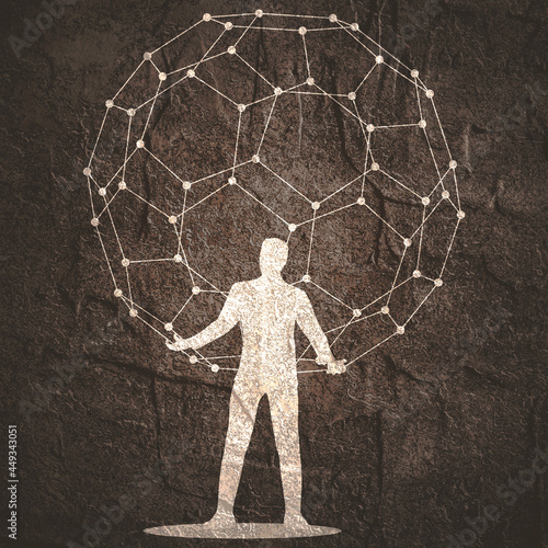 The watermark will not be included on Canvas Print.: Man holding abstract geometry shape in his hands