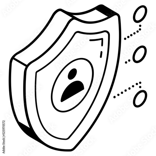 The watermark will not be included on Canvas Print.: Man inside shield, isometric icon of personal security