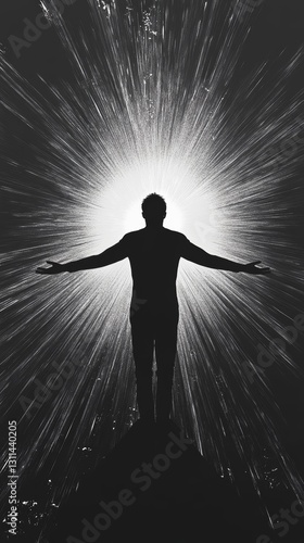 The watermark will not be included on Canvas Print.: Man is standing in the middle of a bright light