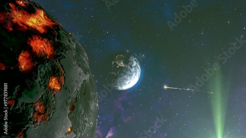 Canvas Print : Massive dead star close to earth, outer space view 3d rendering of planet earth with potential aster