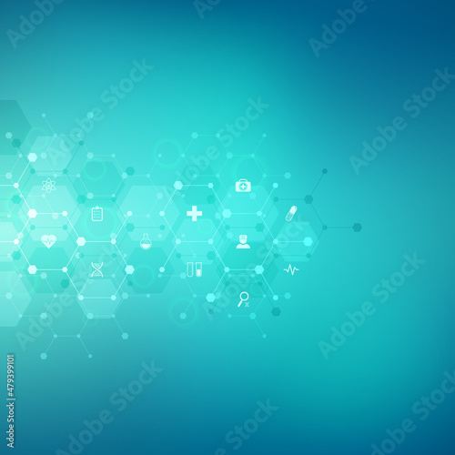 The watermark will not be included on Canvas Print.: Medical background with flat icons and symbols - template design with concept and idea for the health