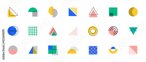 The watermark will not be included on Canvas Print.: Memphis geometric abstract shapes background vector - retro trendy halftone vector elements design f