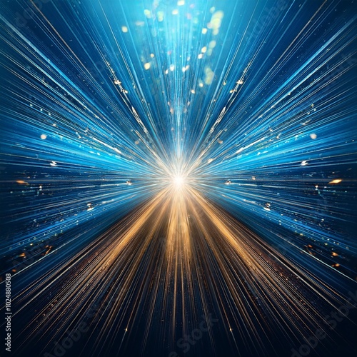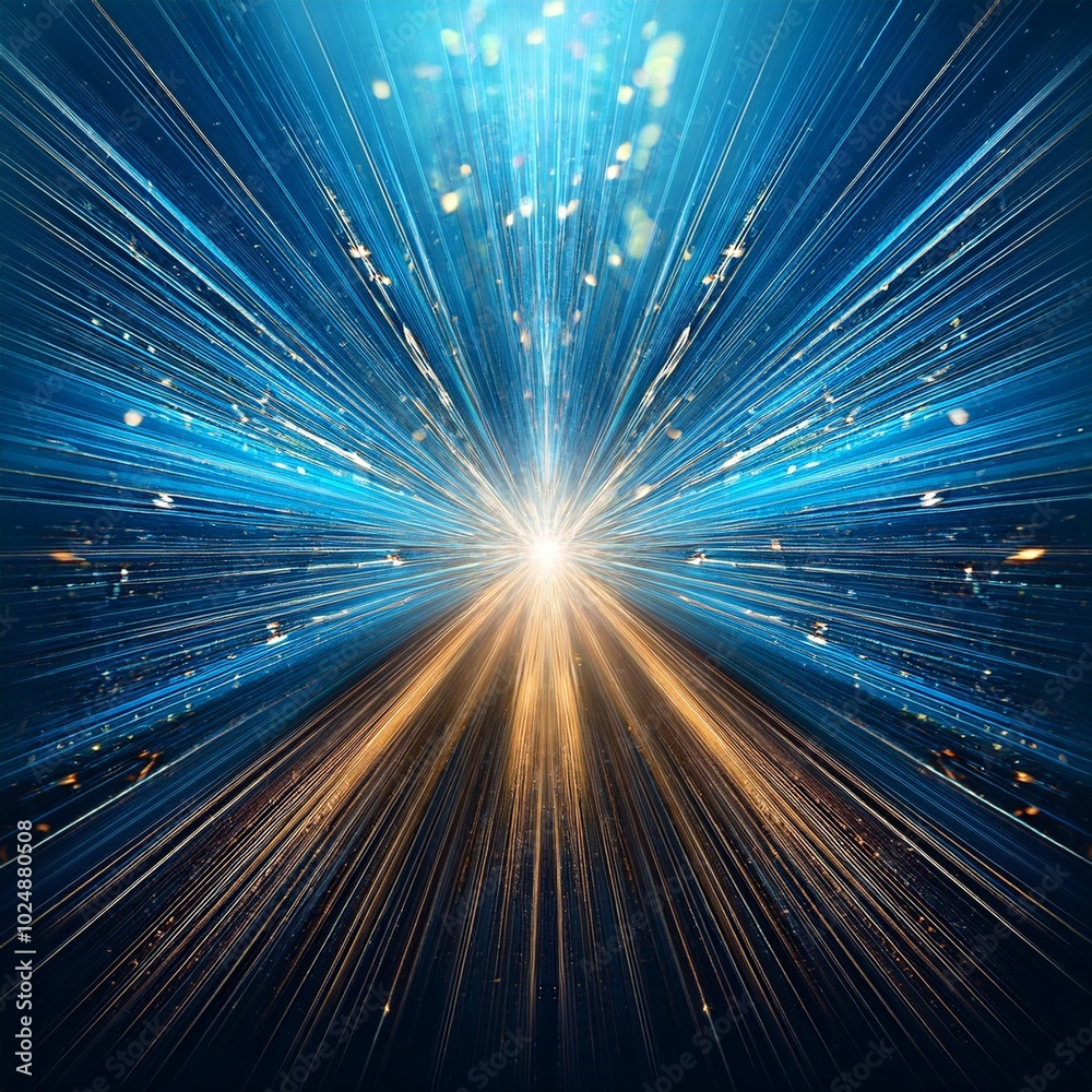The watermark will not be included on Canvas Print.: Mesmerizing blue light burst abstract rays on dark blue with cyan and gold sparkles
