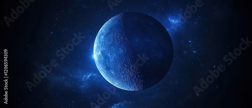 The watermark will not be included on Canvas Print.: Mesmerizing cosmic sphere in a deep blue nebula: a celestial wonder