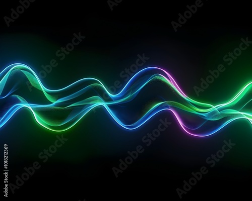 Canvas Prints mesmerizing neon wave pattern in bright green and blue on dark background ideal for modern product d