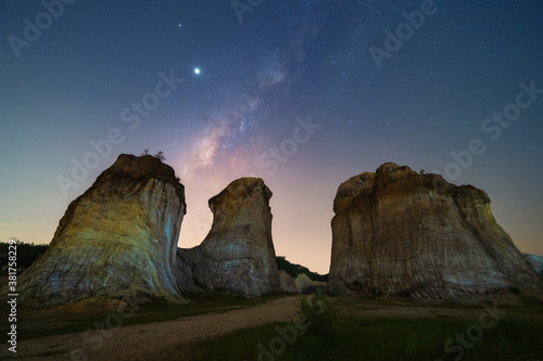 The watermark will not be included on Canvas Print.: Milky way raised above the hill, low noise low exposure stacking processed image