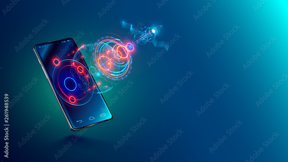 The watermark will not be included on Canvas Print.: Mobile global internet communications - world wide web on phone via wireless satellite network techno