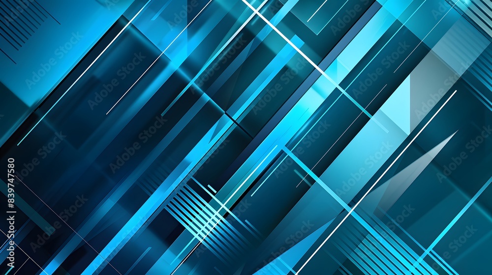 The watermark will not be included on Canvas Print.: Modern abstract blue geometric design with dynamic lines and glowing effects, suitable for corporate