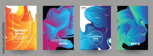 The watermark will not be included on Canvas Print.: Modern abstract covers set, modern colorful wave liquid flow poster - cool gradient shapes compositio