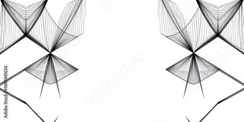 The watermark will not be included on Canvas Print.: Modern abstract seamless pattern of thin black lines forming geometric shapes on white background, a