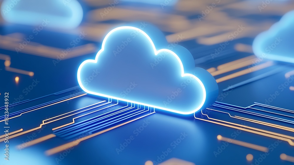 Canvas Prints modern cloud computing technology with neon cloud icon and circuit patterns on blue background - Canvas Prints Canvas Prints modern cloud computing technology with neon cloud icon and circuit patterns on blue background - Canvas Prints