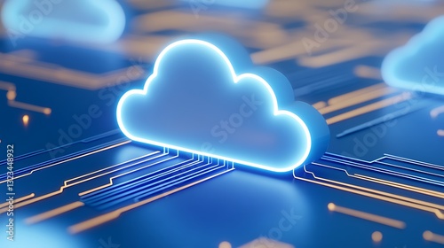 Canvas Prints modern cloud computing technology with neon cloud icon and circuit patterns on blue background