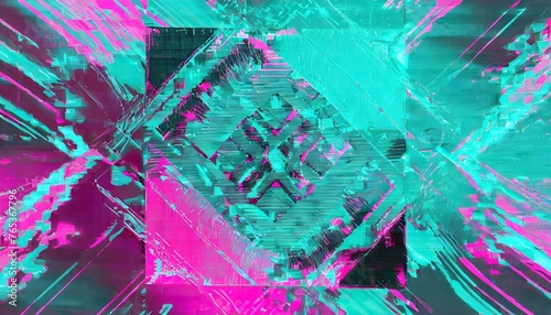 The watermark will not be included on Canvas Print.: Modern digital abstract 3d background abstract blue mint and pink background with interlaced digital