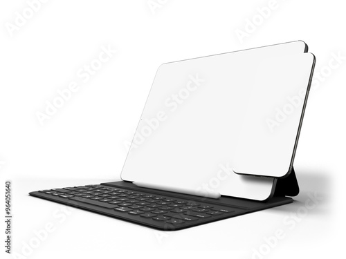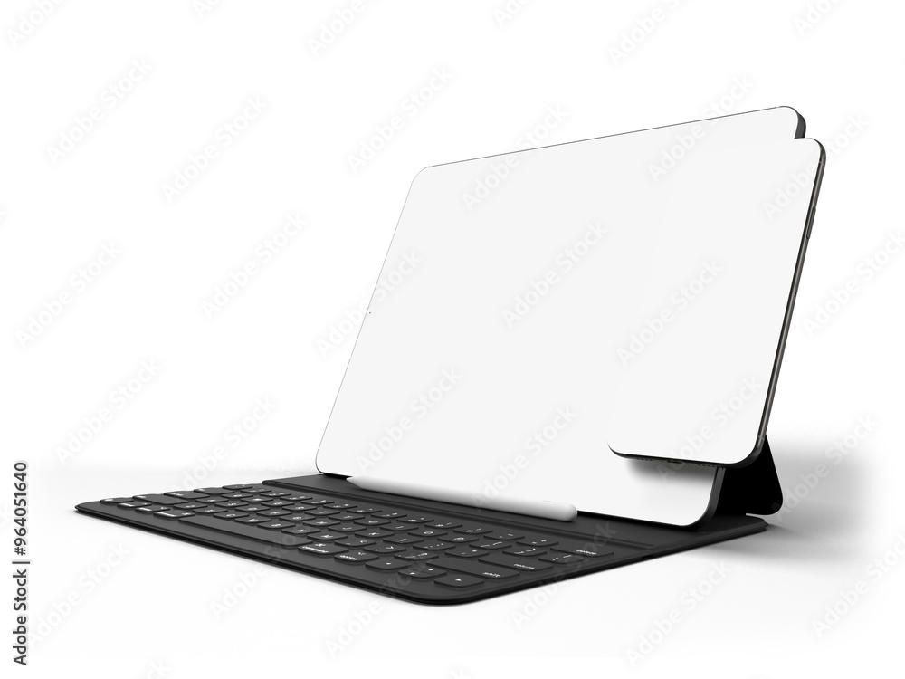 The watermark will not be included on Canvas Print.: Modern digital tablet, smartphone empty screen with keyboard and pen - mockup template for presentati