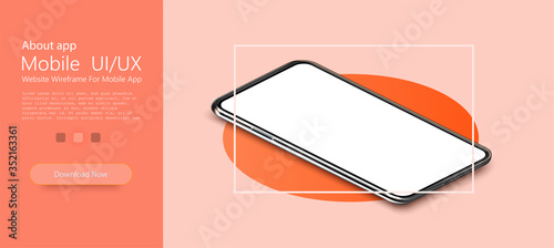 Canvas Prints modern frameless smartphone isolated on red background. isometric view. mockup generic device. vecto