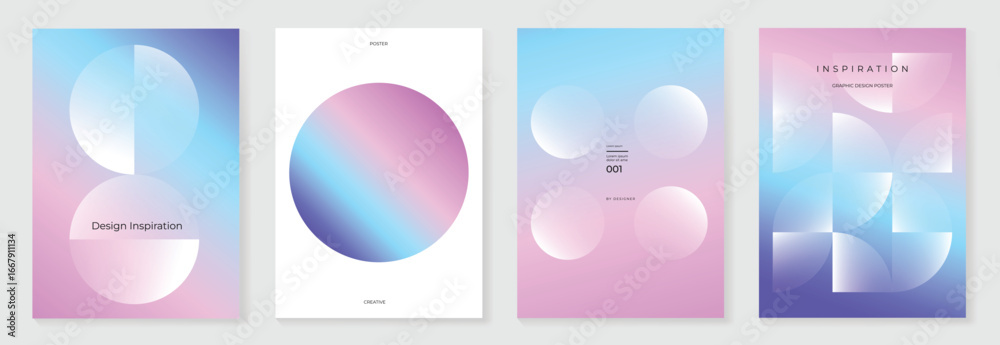 Canvas Prints modern gradient poster on pink blue background vector set. cover template with white geometric shape