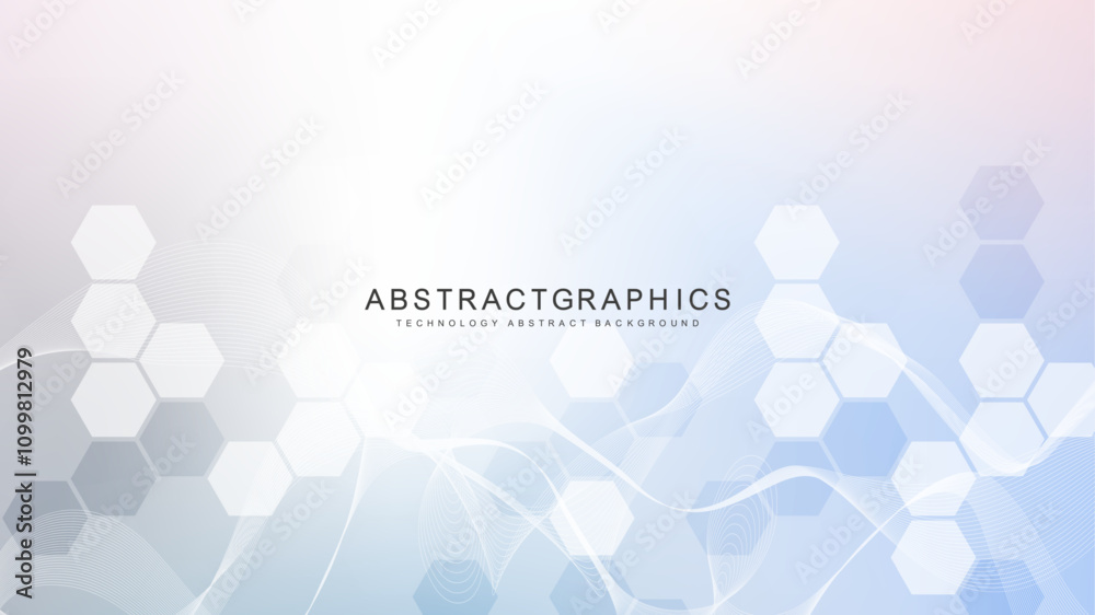 The watermark will not be included on Canvas Print.: Modern scientific background with hexagons, lines and dots - wave flow abstract background - molecular