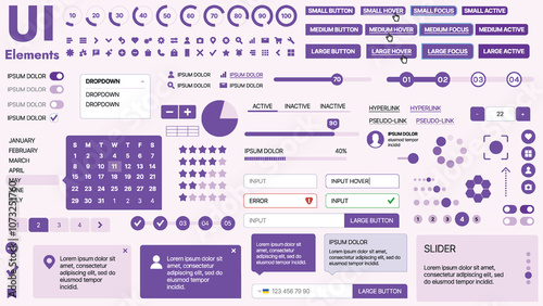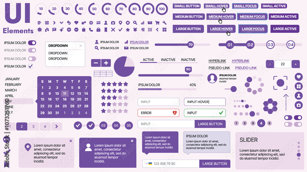 The watermark will not be included on Canvas Print.: Modern ui kit featuring a collection of essential buttons, icons, and navigation elements for websit