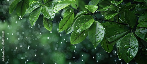 Canvas Prints moist rain covered tree leaves provide a serene copy space image