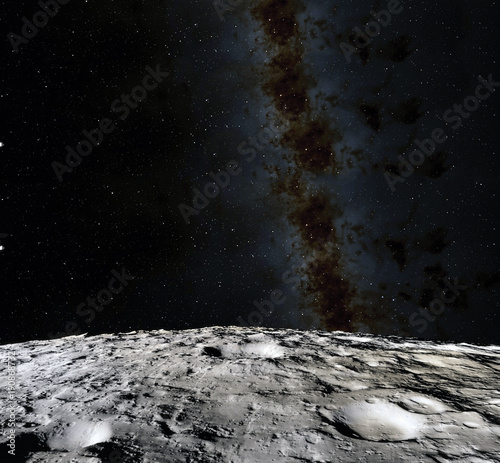 Canvas Prints moon surface. realistic 3d render of moon and space. space and planet. satellite. nebula. stars. ele