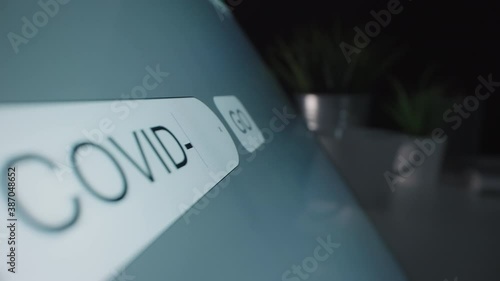 Canvas Print : Motorized moving shot of searching information on covid 19, shot with macro probe lens