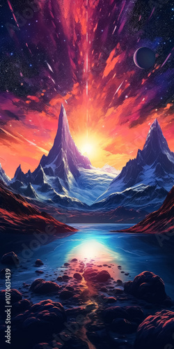 Canvas Prints mountain range with a large mountain in the middle and a body of water in front of it - Canvas Prints Canvas Prints mountain range with a large mountain in the middle and a body of water in front of it - Canvas Prints