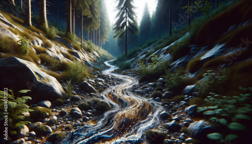The watermark will not be included on Canvas Print.: Mountain river flowing through the forest in the mountains - generative ai