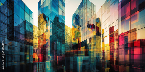 The watermark will not be included on Canvas Print.: Multiple exposure of modern abstract glass architectural forms - generative ai