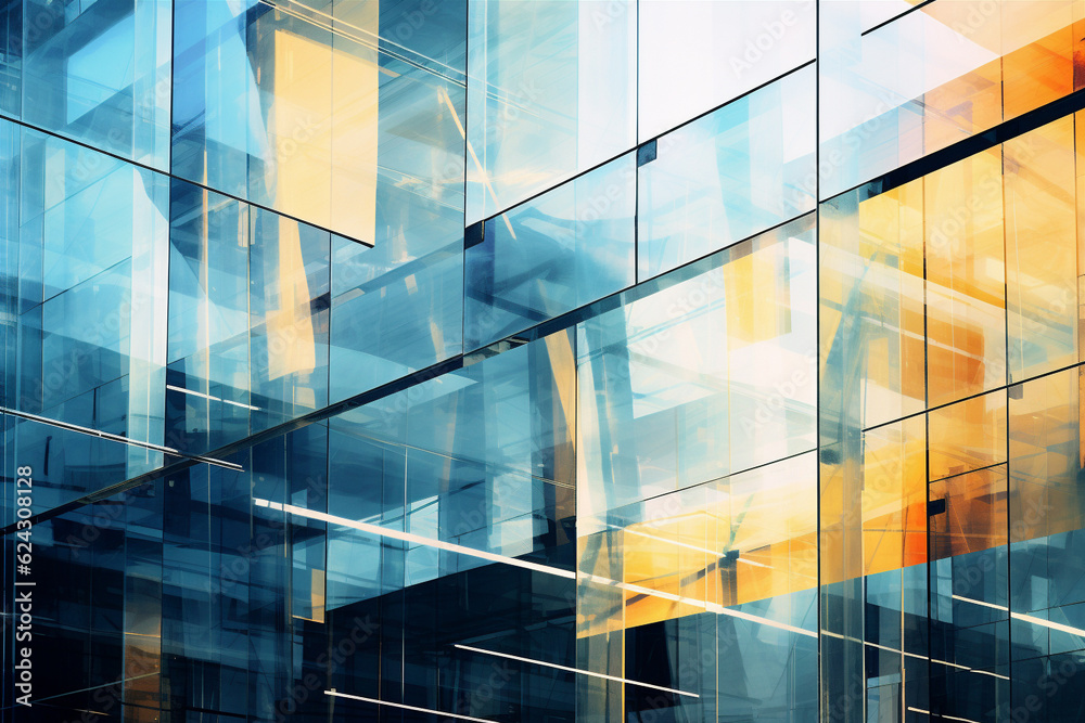 The watermark will not be included on Canvas Print.: Multiple exposure of modern abstract glass architectural forms - generative ai